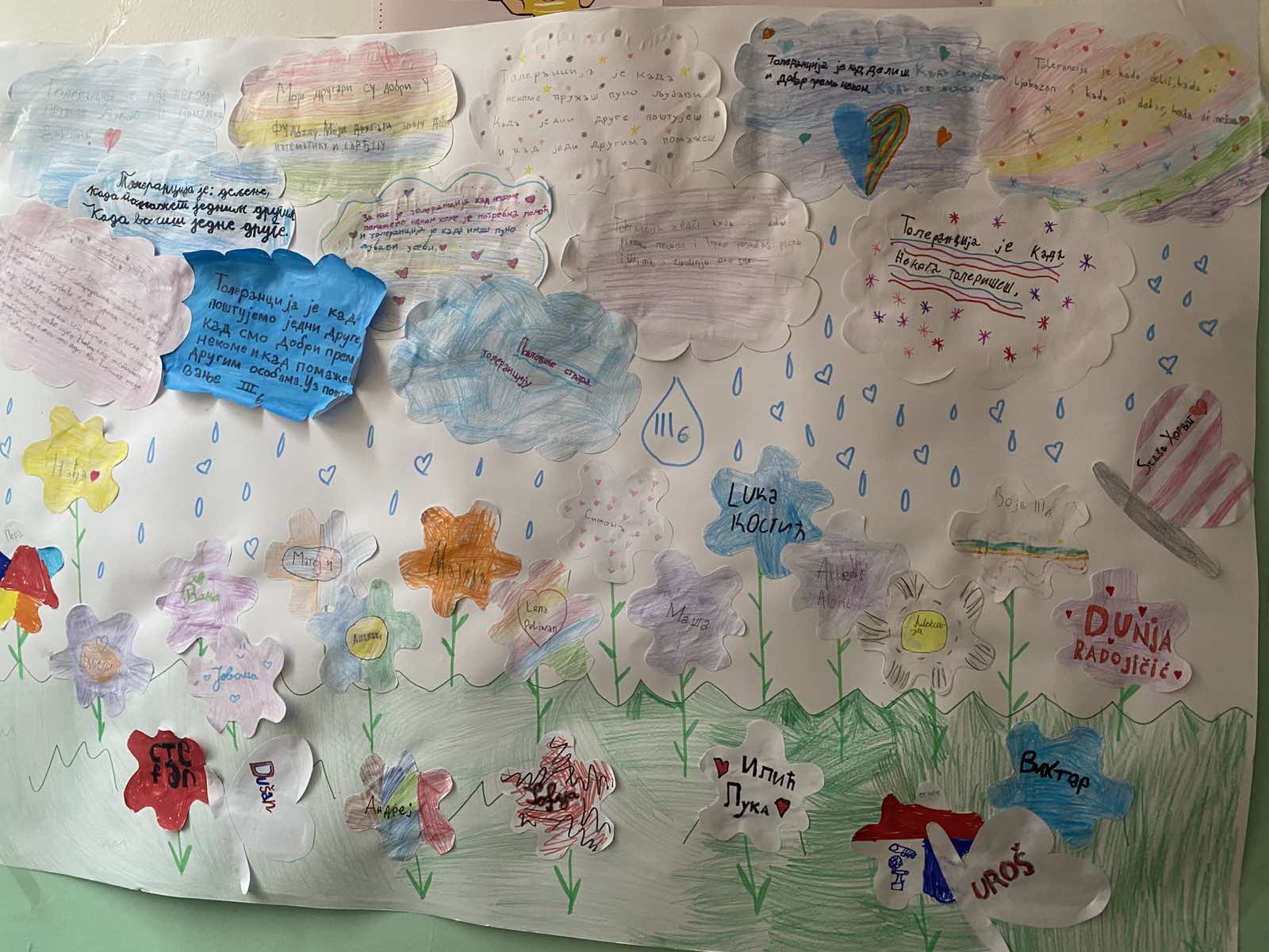 Ученици су обележили Дан толеранције кроз занимљиве и едукативне радионице које су имале за циљ да развију разумевање, поштовање и прихватање различитости. Кроз вођене активности, ученици су разговарали о томе шта за њих значи бити толерантан, како можемо да покажемо доброту у свакодневним ситуацијама и зашто је важно да пажљиво слушамо једни друге. Деца су кроз игру, групни рад и кратке сценске приказе показала да толеранција није само реч — већ поступак који свако од нас може да примени. У оквиру радионица, ученици су заједно осмислили и припремили креативне плакате на тему толеранције. Писали су поруке пријатељства, цртали симболе мира и украшавали плакате бојама које представљају различитост и слогу. Њихови радови сада красе школски ходник и подсећају све ученике на важност међусобног уважавања.