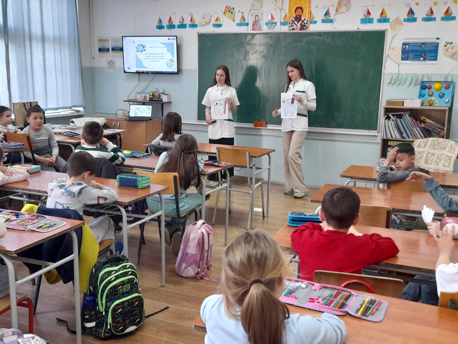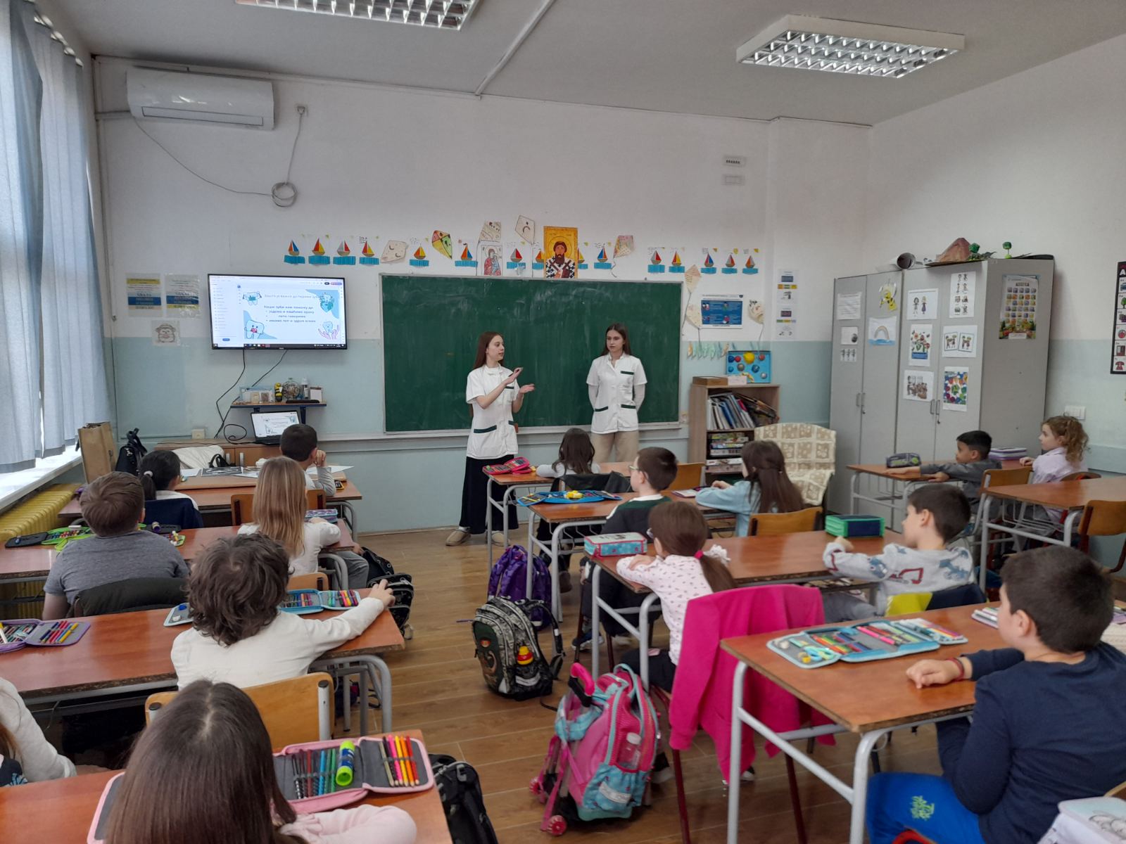 У нашој школи је за ученике првог разреда одржано едукативно предавање, о значају правилне оралне хигијене. Кроз занимљиво и интерактивно излагање, ученици су научили како правилно прати зубе, зашто је редовна хигијена важна и како здраве навике доприносе очувању здравља. Посебан акценат стављен је на свакодневну бригу о зубима и редовне посете стоматологу.